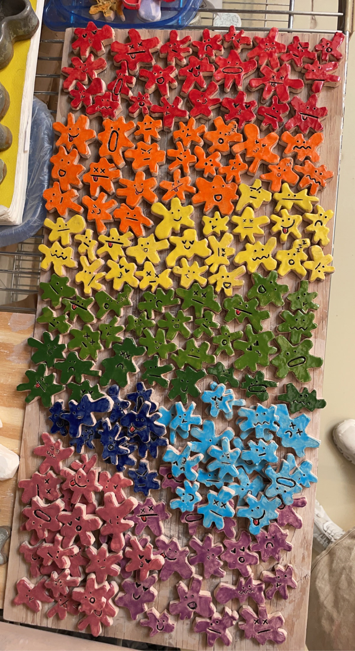 From just a doodle these blobs have turned into paintings, ashtrays, murals, stickers, tiles, and so much more. I am continually aiming to bring tools to those who may struggle with sharing their feelings and doing so in a bright and colorful way.